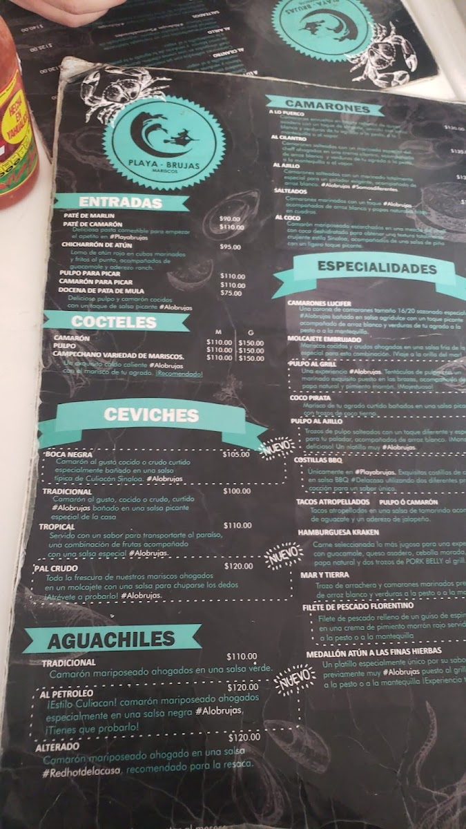 Playa Brujas offers a vibrant and seafood-centric menu that stands out for its fresh, bold flavors. One of the highlights is the Mariscos Enchilados, a dish that brings together a flavorful mix of seafood with a spicy kick. They also feature the Ostiones de este domingo, a must-try for oyster lovers looking for a taste of the sea with a touch of local flavor. If you're in the mood for something refreshing, the Agua is a great choice, offering a cool, hydrating beverage perfect for complementing the seafood dishes. The restaurant’s emphasis on fresh ingredients and regional specialties ensures a dining experience that feels both authentic and satisfying. Whether you're enjoying a leisurely meal at the restaurant or opting for Entrega a Domicilio, Playa Brujas guarantees an unforgettable seafood experience.